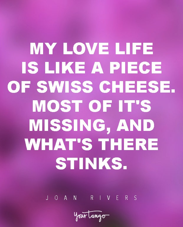 8. "My love life is like a piece of Swiss cheese. Most of it's missing, and what's there stinks." — Joan Rivers​
