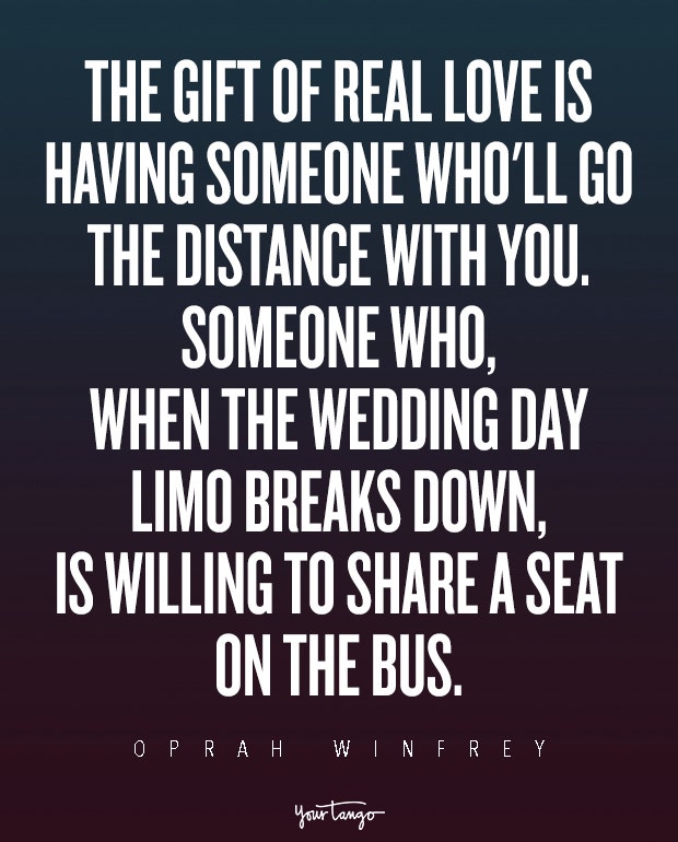 "The gift of real love is having someone who'll go the distance with you. Someone who, when the wedding day limo breaks down, is willing to share a seat on the bus." — Oprah Winfrey