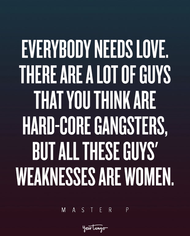 "Everybody needs love. There are a lot of guys that you think are hard-core gangsters, but all these guys' weaknesses are women." — Master P.