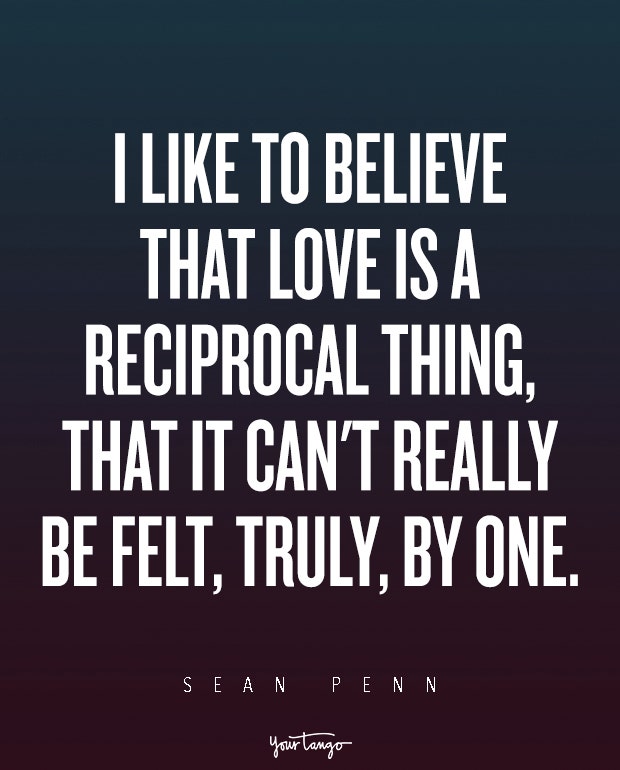 "I like to believe that love is a reciprocal thing, that it can't really be felt, truly, by one." — Sean Penn