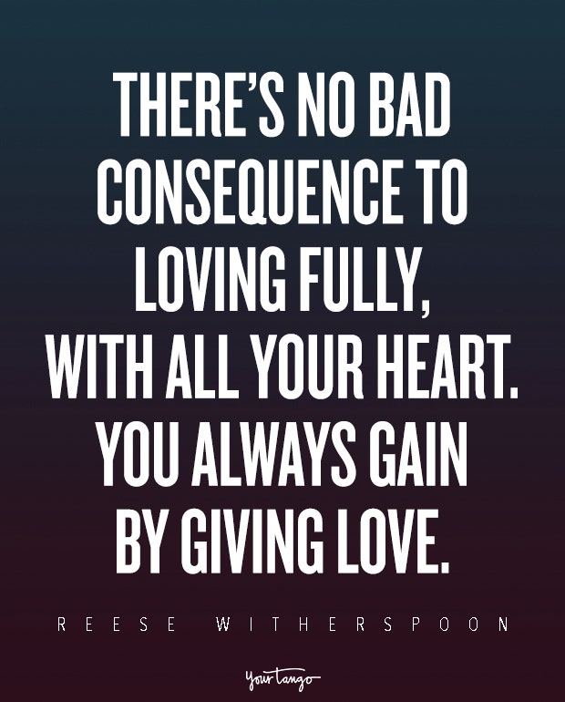 "There’s no bad consequence to loving fully, with all your heart. You always gain by giving love." — Reese Witherspoon