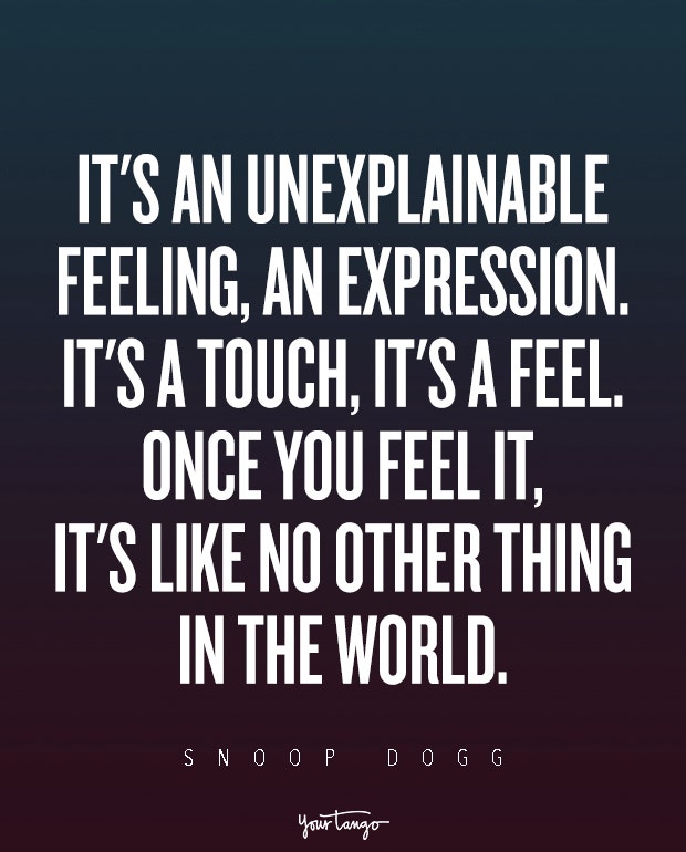 "It's an unexplainable feeling, an expression. It's a touch, it's a feel. Once you feel it, it's like no other thing in the world." — Snoop Dogg