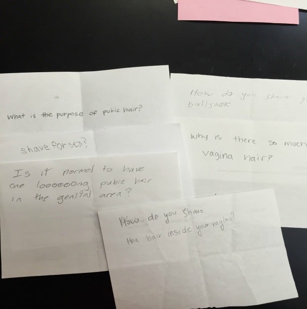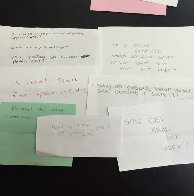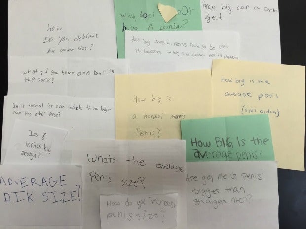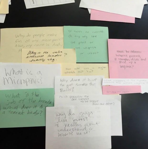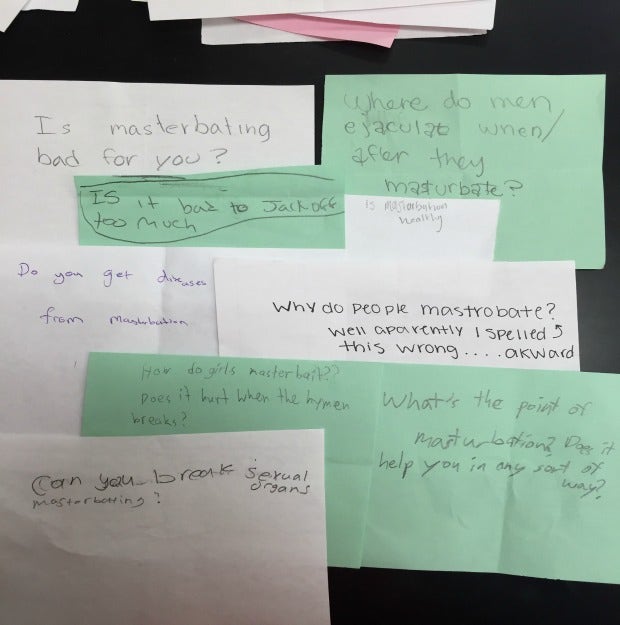 It looks like one teacher decided to find out by letting students anonymously turn in their biggest questions about sex. That person then posted pictures of the questions on Reddit.