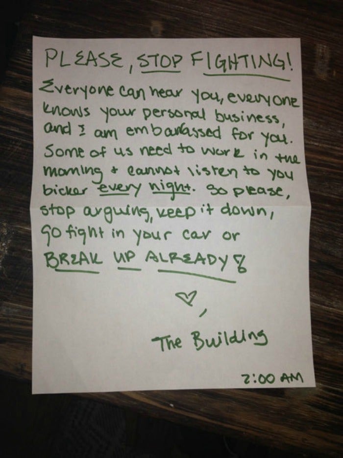 10 Hilarious Passive-Aggressive Notes From Neighbors Who Have HAD IT
