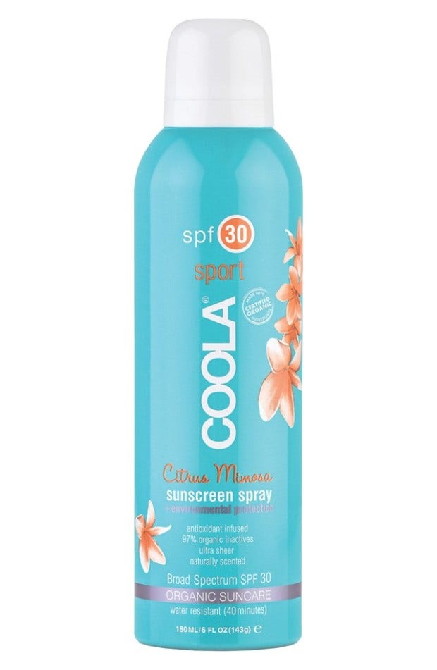 Some people have fears about aerosolized sunscreen because they're easily inhaled while applying. This seems like a valid concern, so if I use these products I make my kids hold their breath and then step away from where I sprayed them. Not super scientific, but probably helpful. This is a VERY WHITE sunscreen, but great for touching up shoulders and necks during busy beach days or during long workouts.