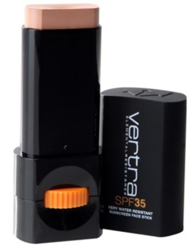 This is a high-end surf product, marketed at surfers, tinted beige in case you don't like the white lines on your face. I find the BabyGanics works just as well, but Vertra is easy to find at most good surf shops. Also, they have a Mick Fanning tint that isn't as brown. Warning: The beige tint by Vertra will stain.