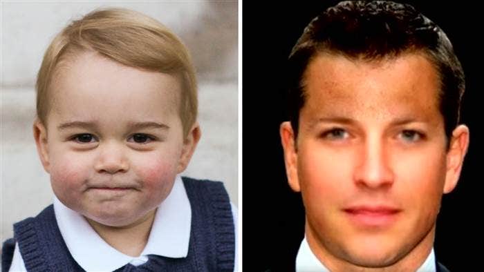 Scientists at the University of Bradford in England have created an age-progression of Prince George. The scientists used software that took George's current facial features, as well as features from his family members, to predict what he'll look like at ages seven, 20, 40, and 60.