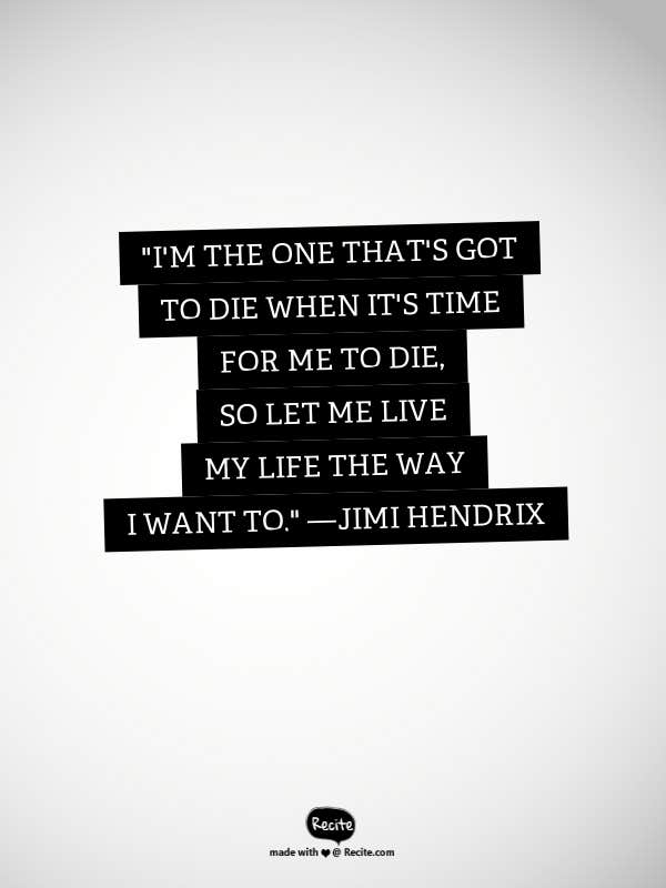 "I'm the one that's got to die when it's time for me to die, so let me live my life the way I want to."