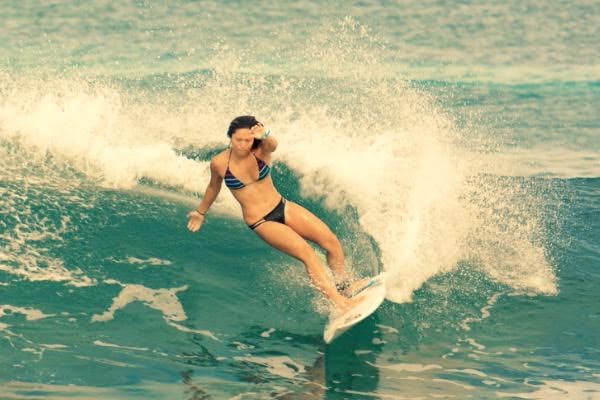 Relatively, there aren't a whole ton of women surfers out there, so you know that this woman must be totally bad-ass. She's a total trailblazer, and there's nothing a strong man likes better than a woman who can hold her own ... even in a line-up full of guys.