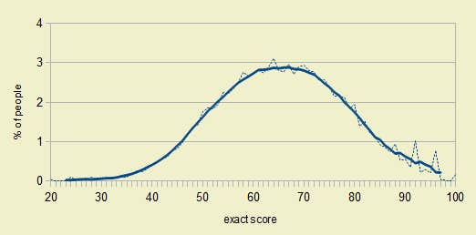 The chart isn't an exact view of the population, as the "people who seek out tests of Machiavellianism on the internet aren't the most likely representative of the average person," the test cautions.