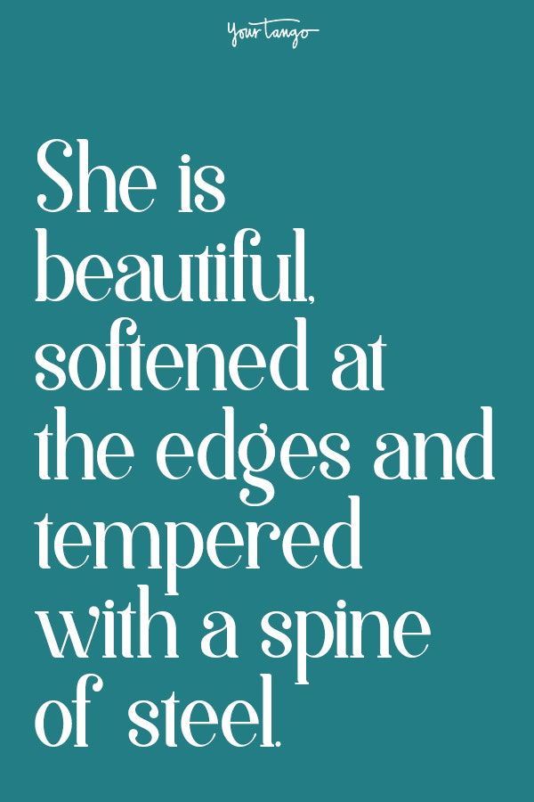 4. "She is beautiful, softened at the edges and tempered with a spine of steel." — Unknown