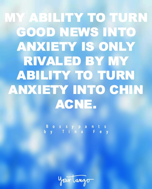 "My ability to turn good news into anxiety is rivaled only by my ability to turn anxiety into chin acne."