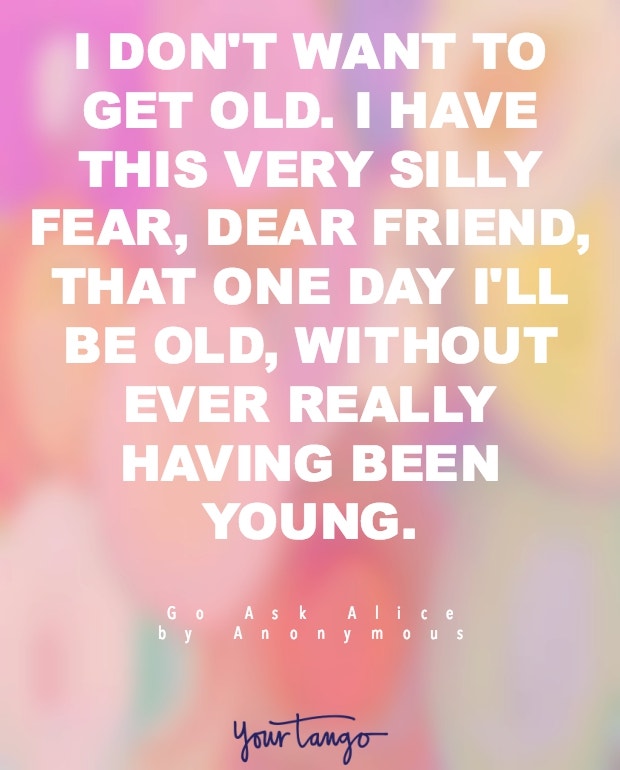 "I don't want to get old. I have this very silly fear, dear friend, that one day I'll be old, without ever having really been young."