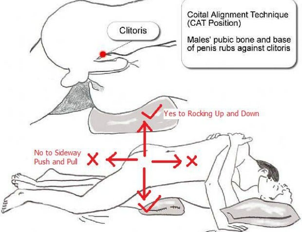 The Coital Alignment Technique (CAT) is a variation of missionary that directly stimulates the clitoris, giving this traditionally bland position a big boost of pleasure.