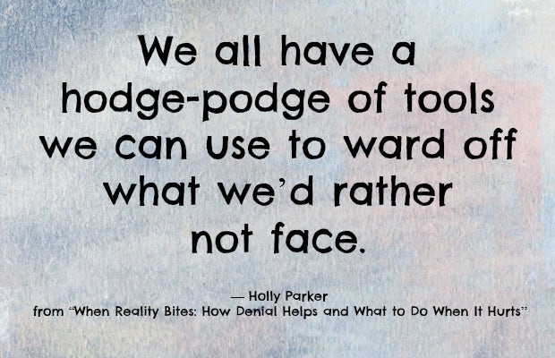 In her book, Parker talks about everyday experiences with denial that we're all familiar with. Ignoring the bills piling up until they’re late? Yep. Feeling sad but never making an attempt to change anything? Check! Denying that you're not feeling well until your body throws in the towel? We’ve all been there.