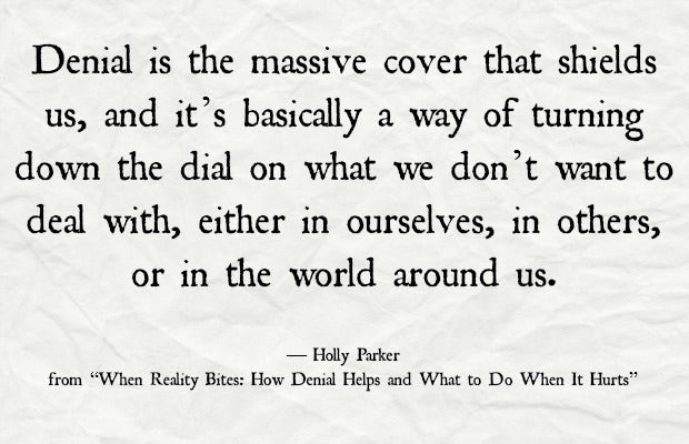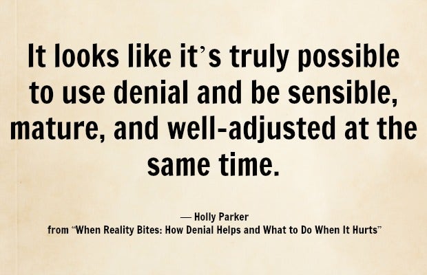 And denial's unique ability to help people stop themselves from falling into an abyss might actually be a good thing, according to Dr. Holly Parker in her book, When Reality Bites: How Denial Helps and What to Do When It Hurts.