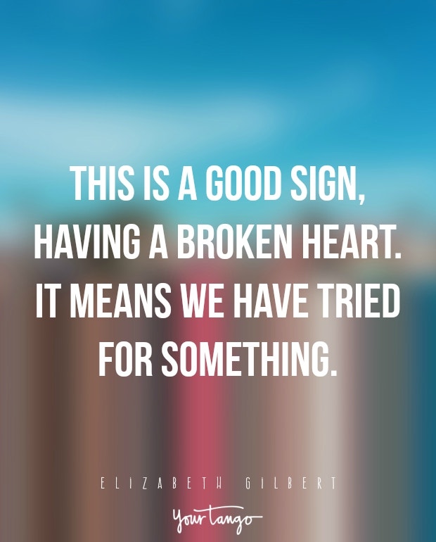 "This is a good sign, having a broken heart. It means we have tried for something." — Elizabeth Gilbert