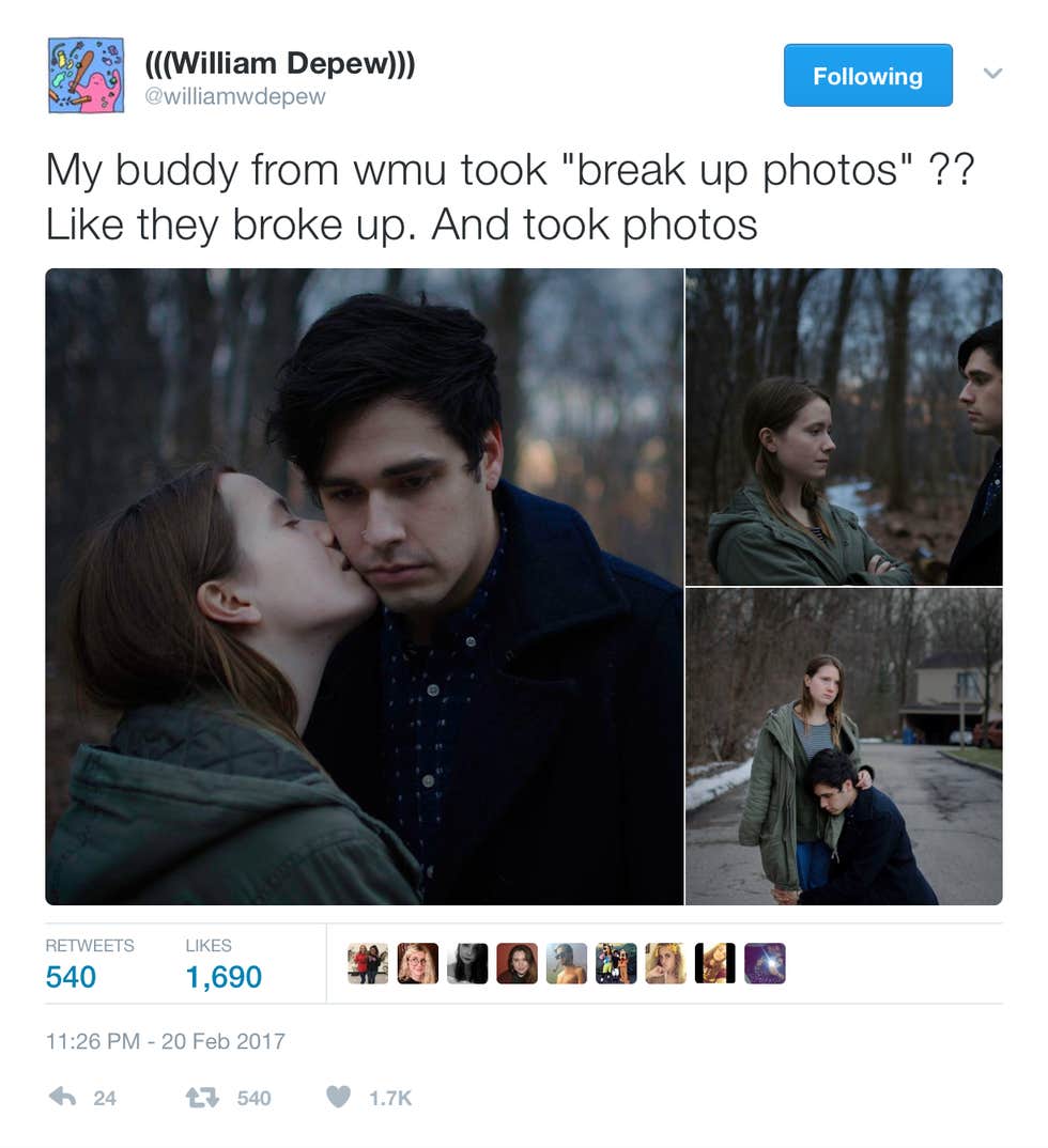 Even their friends seemed to find it a little strange as Bach’s buddy posted the breakup photos on his Facebook in a manner that seemed to be filled with jest. It didn’t take long before they started to go viral on Twitter.