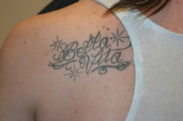 4. Casey's "Bella Vita" tattoo.