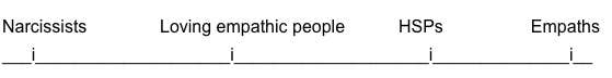 Many highly sensitive people are also empaths. If you think about this distinction in terms of an empathic spectrum, empaths are on the highest end; highly sensitive people are a little lower on the spectrum, people with strong empathy but who are not HSPs or empaths are in the middle of the spectrum. Narcissists, sociopaths, and psychopaths who have “empath deficient disorders” are at the lowest end of the spectrum.