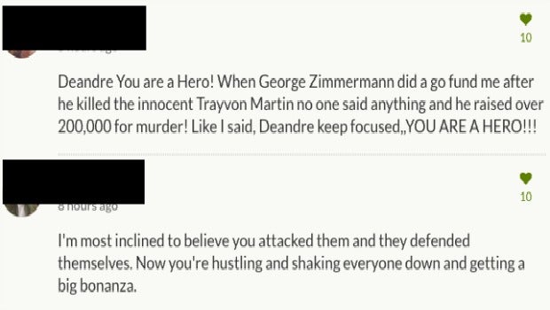"The funds will be used to pay for my medical bills. I appreciate the support from my friends, family, and the news platforms that have reached out to check on me. We will not let this fade & disappear. People are carrying real hate in their hearts for the Black Community and I refuse to just let it happen. God Bless & thank you all again!"