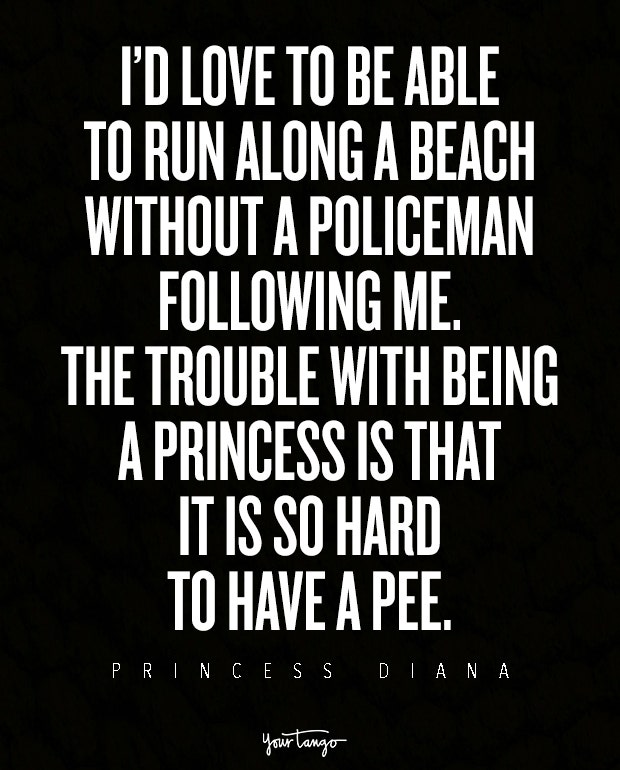 Said to friends: “I’d love to be able to run along a beach without a policeman following me.” And: “The trouble with being a Princess is that it is so hard to have a pee.”