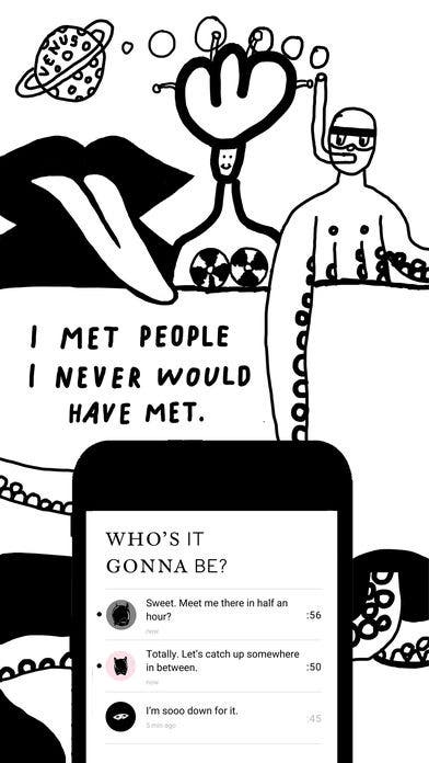 The reason why it only stays up for an hour is that the app is for people are already set to go and hook up ASAP — not tomorrow, not next week, but right now. You have one hour to chat and set up your hook-up, and then you'll close the app and meet. You can fill that hour with whatever you want; maybe you want to get to know literally everything you can about that person, or maybe you want to sext for a while, but deciding how you spend it is all part of the fun.