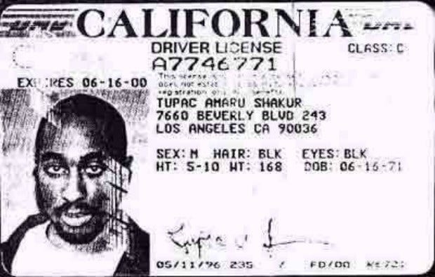 While the report lists Tupac as being 6 feet and 215 pounds, theorists have pointed out that Shakur’s driver’s license (which was issued 4 months before his death) has him at 5’10” and 168 pounds.