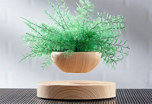 This plant needs no soil or water, drawing enough moisture from the air to keep it looking beautiful all year. An electromagnetic base makes the pot “float” in mid-air.
