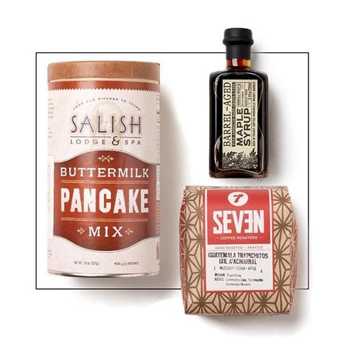 These wonderfully fluffy and tender buttermilk pancakes have pleased hungry breakfast-ers for a century, and this mix guarantees you can have the same delightful meal in mere minutes. Topped with Woodinville Whiskey Co.'s Barrel-Aged Maple Syrup and enjoyed alongside a robust cup of Seven Coffee Roasters coffee, these famous pancakes are simply divine.