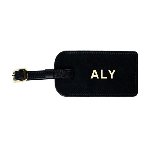 A luggage strap that is personalized is a great way to have your luggage stick out in a turnstyle. A great option is the cognac luggage tag, and you can get them personalized, with gold letters, which would make the gift even better.