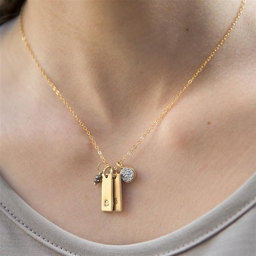 For couples who want to personalize their new love and wear it around their necks, this gorgeous modern charm necklace featuring a sparkling 6mm charm and accent pyrite stones. Also great for new parents to show off their kids' initials.