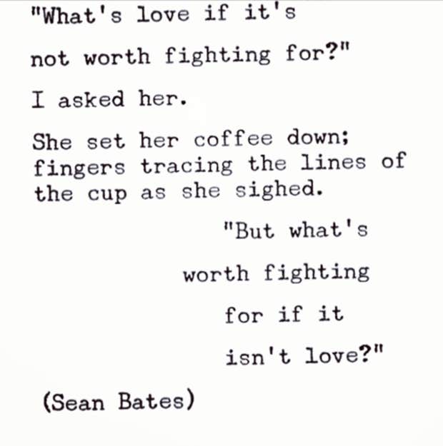 So, I immediately reacted to the beginning. The end of this poem, I can agree with, because it clarifies that love shouldn’t require constant fighting.