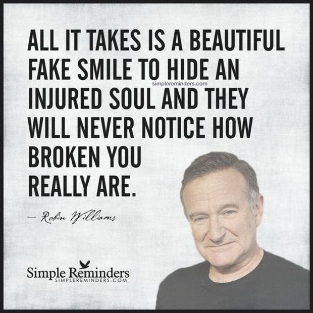 All it takes is a beautiful fake smile to hide an injured soul and they will never notice how broken you really are