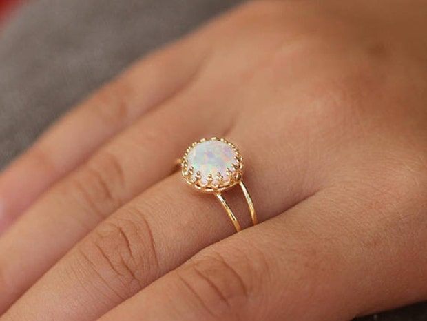 This opal gold ring is a show-stopper in its own right. It has a simple design but still looks like it is fit for a princess, which your girl is!