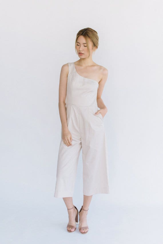 “More than ever, brides want to express their personalities and individual style on their special day. Jumpsuits offer a level of comfort, sex appeal, and, of course, boss-lady attitude. By working with an Etsy seller, shoppers often have the opportunity to customize their bridal jumpsuit to fit like a glove,” says Dayna Isom Johnson, an Etsy trend expert.