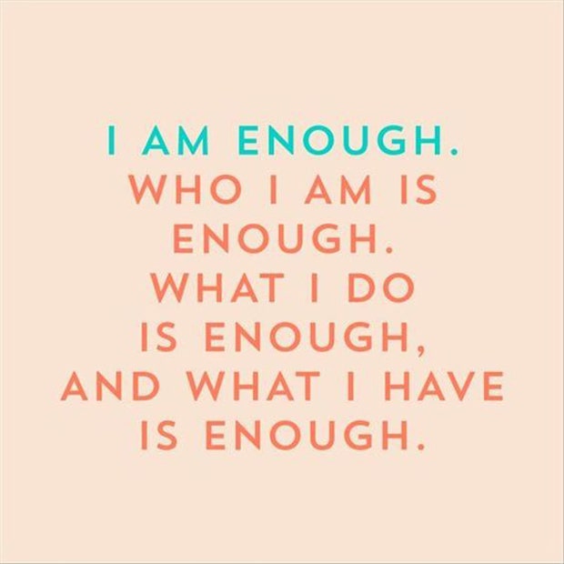 "I am enough. Who I am is enough. What I do is enough, and what I have is enough."- Unknown