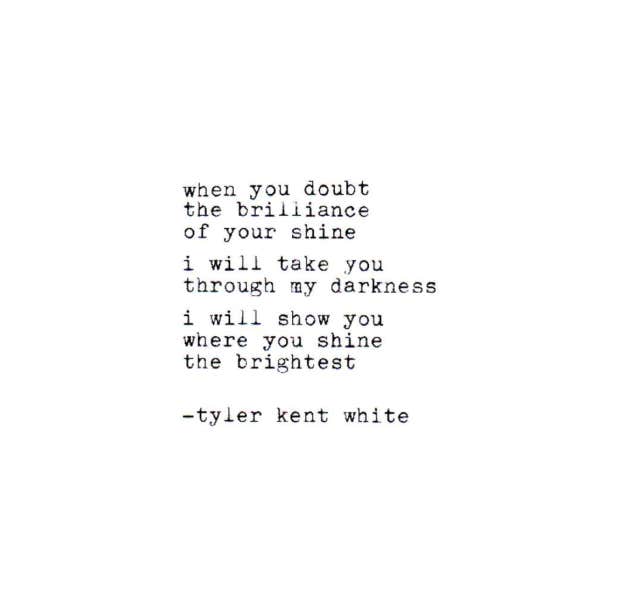 "When you doubt the brilliance of your shine, I will take you through my darkness. I will show you where you shine the brightest.” – Tyler Kent White
