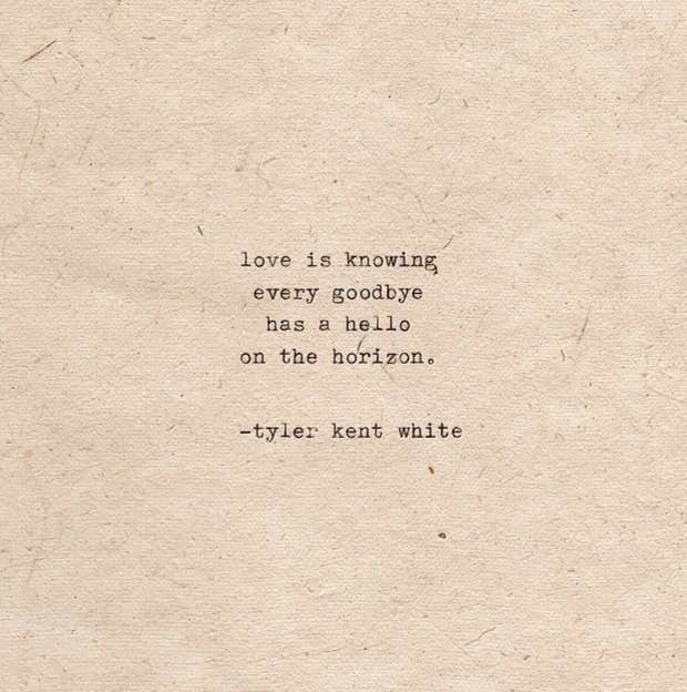 "Love is knowing every goodbye has a hello on the horizon.” – Tyler Kent White