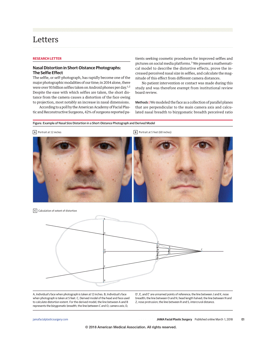 "Despite the ease with which selfies are taken," the letter states, "the short distance from the camera causes a distortion of the face owing to projection, most notably an increase in nasal dimensions."