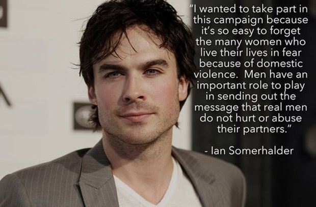 “I wanted to take part in this campaign because it’s so easy to forget the many women who live their lives in fear because of domestic violence. Men have an important role to play in sending out the message that real men do not hurt or abuse their partners.” -Ian Somerhalder