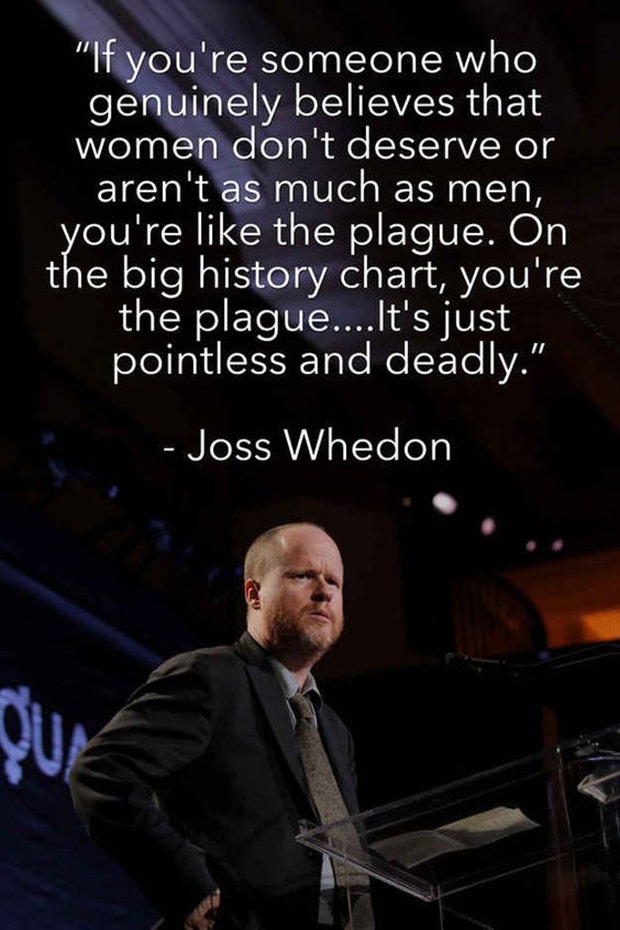 “If you’re someone who genuinely believes that women don’t deserve or aren’t as much as men, you’re like the plague. On the big history chart, you’re the plague … it’s just pointless and deadly.” -Joss Whedon
