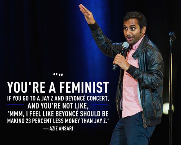 “You’re a feminist if you go to a Jay-Z and Beyoncé concert, and you’re NOT like, ‘mmm, I feel like Beyoncé should be making 23 percent less money than Jay-Z.’” -Aziz Ansari