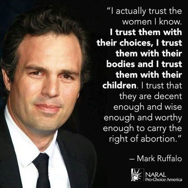 “I actually trust the women I know. I trust them with their choices, I trust them with their bodies and I trust them with their children. I trust that they are decent enough and wise enough and worthy enough to carry the right of abortion.” -Mark Ruffalo