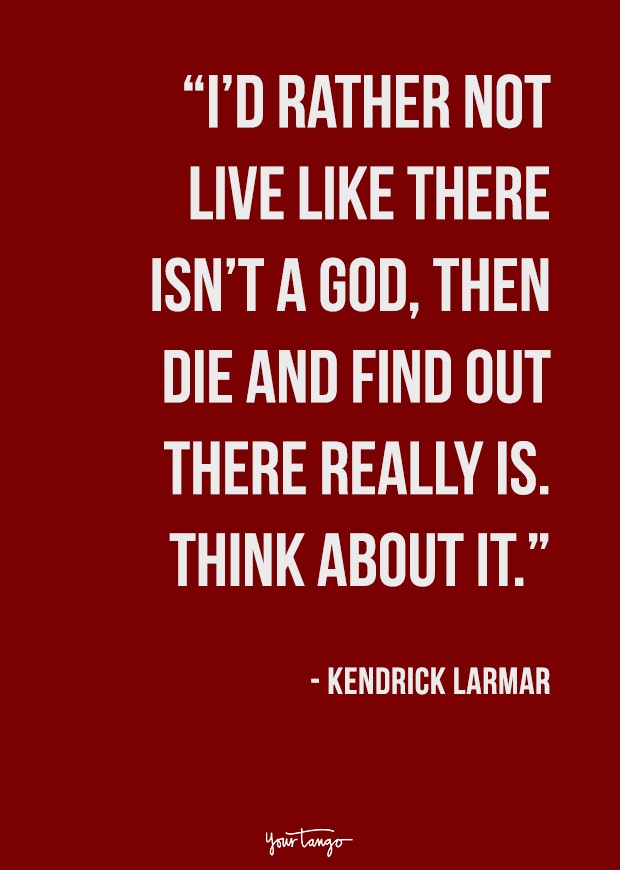 "I'd rather not live like there isn't a God, then die and find out there really is. Think about it."— Kendrick Lamar