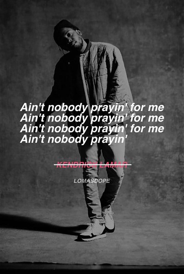 "Ain't nobody prayin' for me, ain't nobody prayin' for me, ain't nobody prayin' for me, ain't nobody prayin'"— Kendrick Lamar