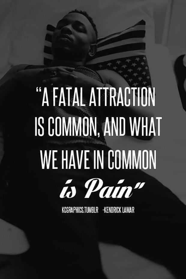 "A fatal attraction is common, and what we have in common is pain."— Kendrick Lamar