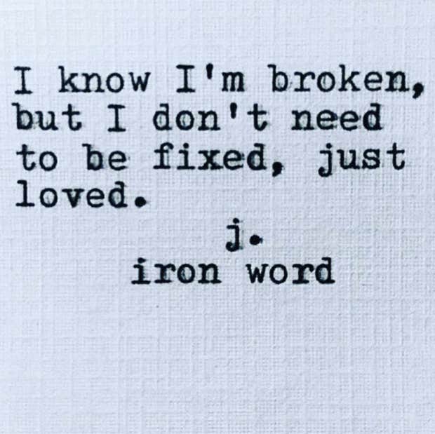 “I know I’m broken, but I don’t need to be fixed, just loved.”—J. Iron Word