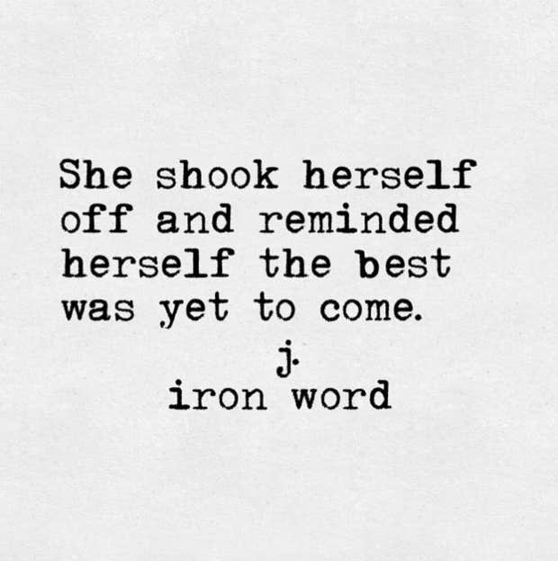 “She shook herself off and reminded herself the best was yet to come.”—J. Iron Word