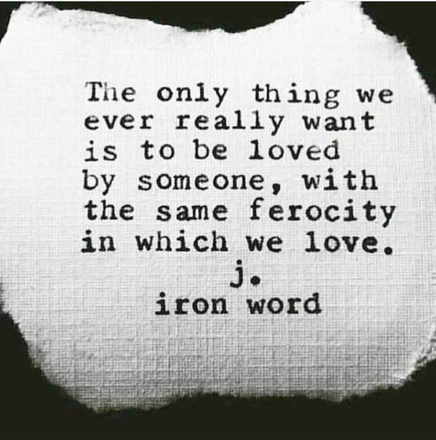 “The only thing we ever really want is to be loved by someone, with the same ferocity in which we love.”—J. Iron Word